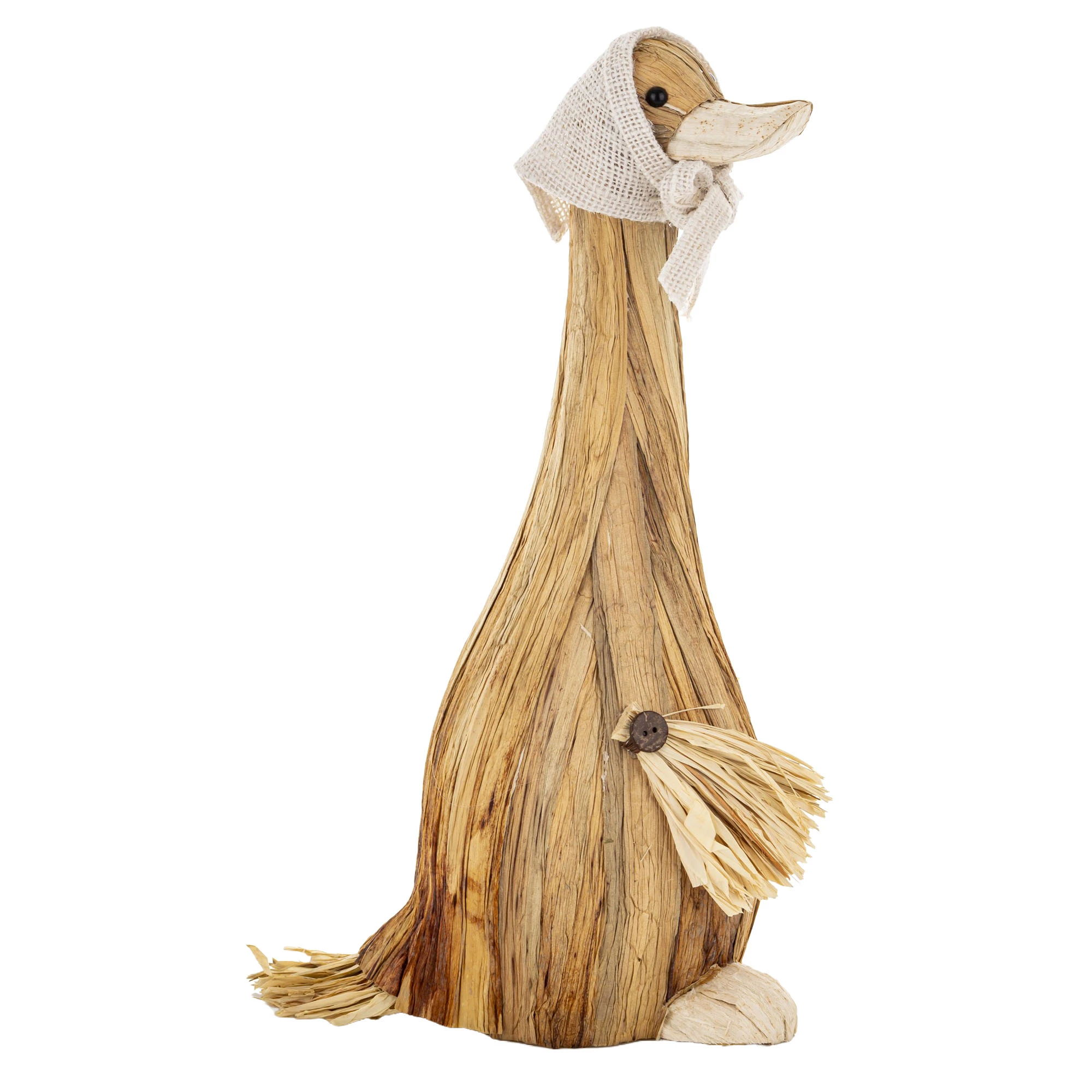 Wprowadź do swojego wnętrza odrobinę sielskiego klimatu dzięki tej wyjątkowej figurce. Gęś wykonana z naturalnych materiałów to idealna dekoracja dla miłośników stylu boho, rustykalnego oraz skandynawskiego.