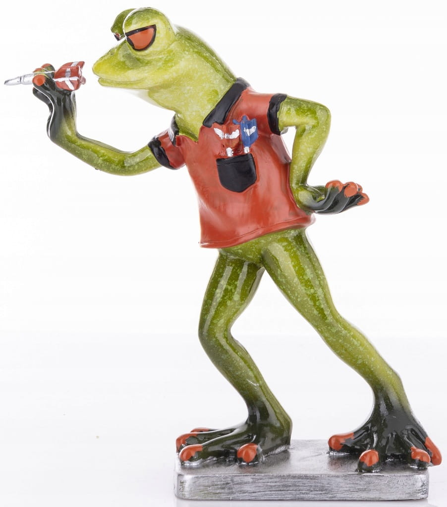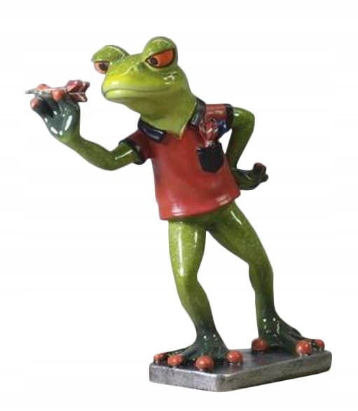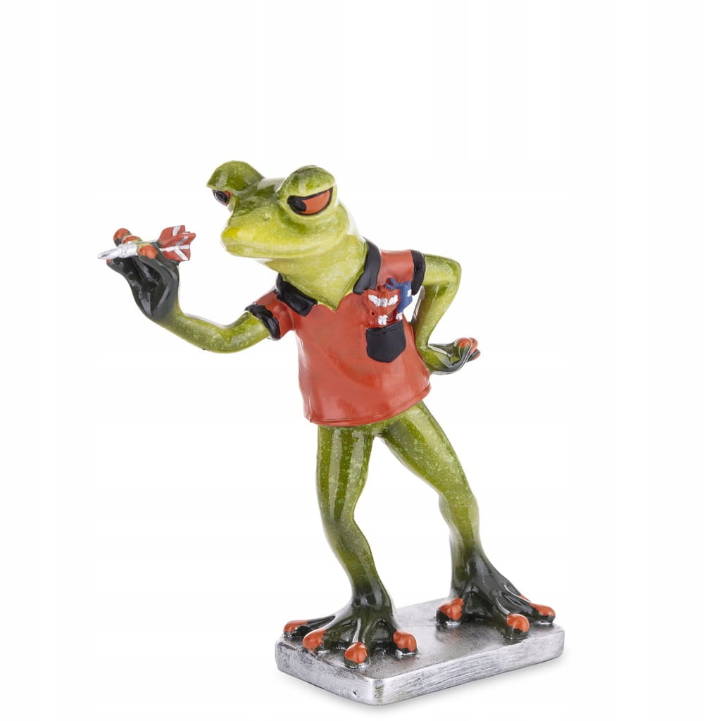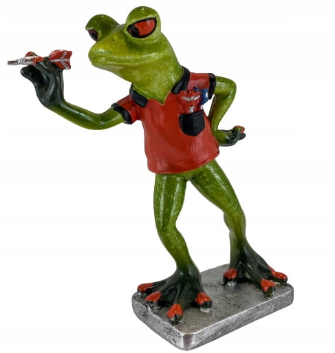 Figurka ozdoba ceramiczna żaba rzucająca lotkami CZERWONA