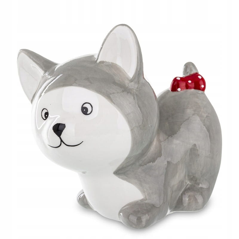 Skarbonka w kształcie kota, wykonana z dolomitu. Elegancka dekoracja wnętrza, dostępna w białym i szarym kolorze. Doskonały pomysł na prezent.